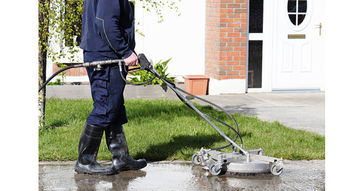Step 2: Surface Preparation – Loose debris, leaves, and obstacles are cleared to ensure even cleaning results.